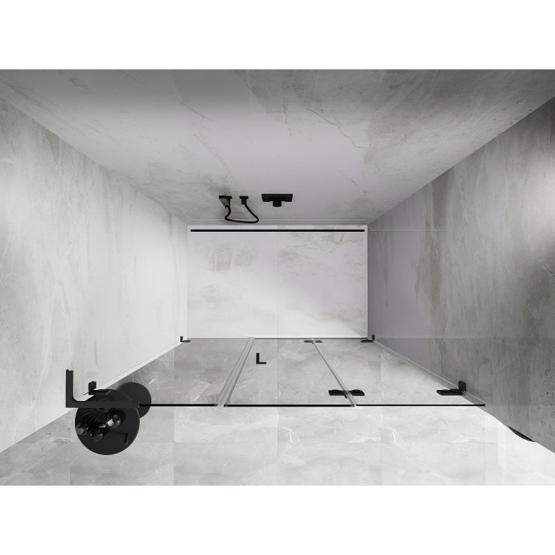Špecifikácia produktu: Rozmer: 140x200 cm Strana montáže: Pravá Vchod: Skladacia Farba skla: Priehľadná Povrchová úprava: Tesnená Profil: Hliník Stabilizátor v tvare L: Nerezová oceľ Typ skla: Tvrdené Hrúbka skla: dvere 6 mm, stena 8 mm Povlak pre ľahké vyrovnanie nerovností stien - Bez profilu v prípade dokonale rovných stien Možnosť montáže na sprchovú vaničku alebo obklady Mosadzné svorky a pánty v jednej rovine so sklenenou tabuľou Magnetický prúžok a elastomérové tesnenie pre odvod vody Hliníkový prah tesnenia dverí