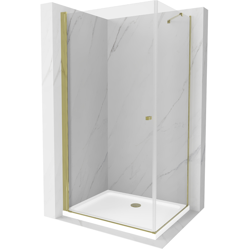 Sprchový kout Mexen Pretoria s výklopným mechanismem 90 x 70 cm, průhledný, zlatý + Plochá sprchová vanička - 852-090-070-50-00-4010