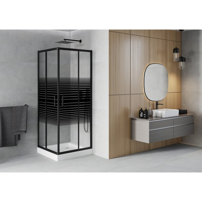 Sprchový kout Mexen Rio čtvercový 80 x 80 cm, černé pruhy, černá + sprchová vanička Rio, bílá - 860-080-080-70-20-4510