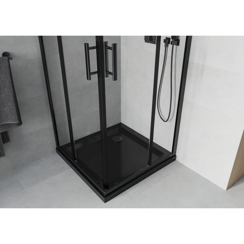 Sprchový kout Mexen Rio čtvercový 80 x 80 cm, průhledný, černý + Plochá sprchová vanička, černá - 860-080-080-70-00-4070B