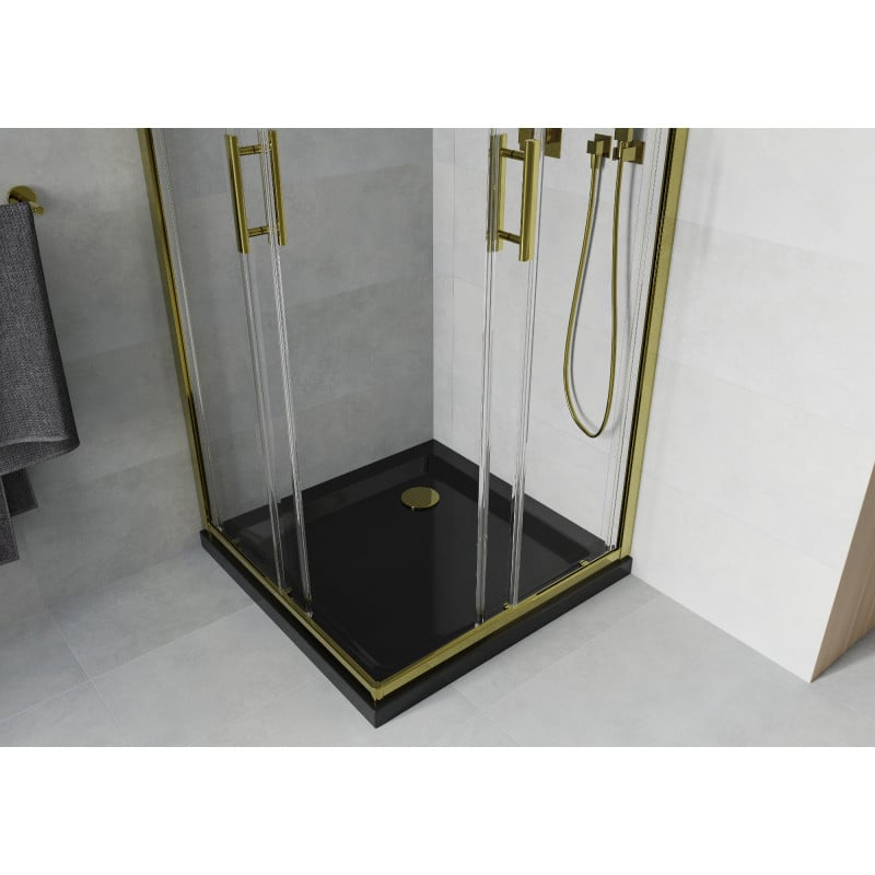 Sprchový kout Mexen Rio čtvercový 80 x 80 cm, průhledný, zlatý + plochá sprchová vanička, černá - 860-080-080-50-00-4070G