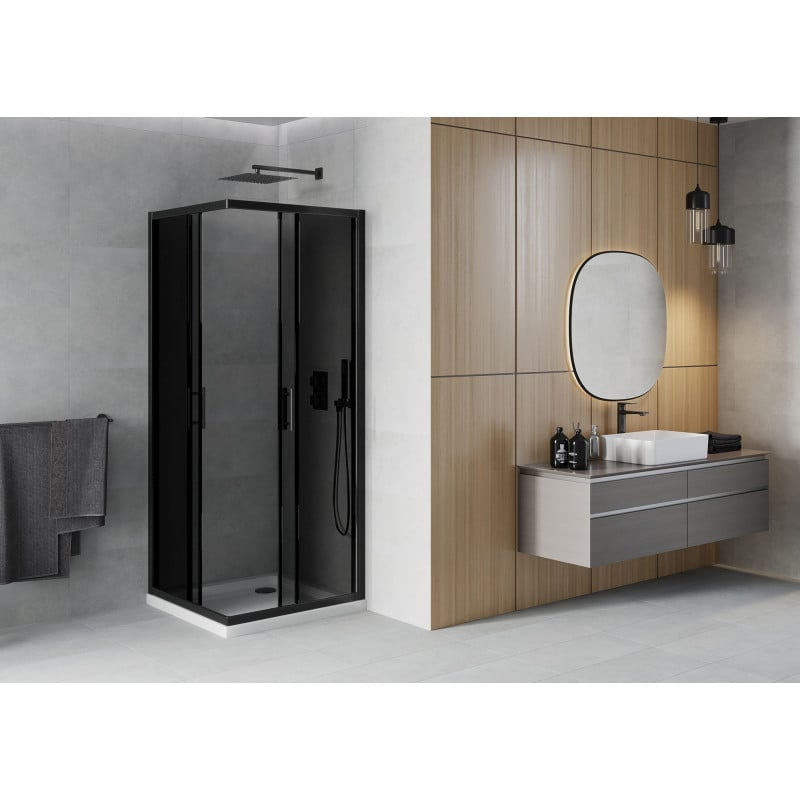 Sprchový kout Mexen Rio čtvercový 90 x 90 cm, grafit, černá + plochá sprchová vanička, bílá - 860-090-090-70-40-4010B