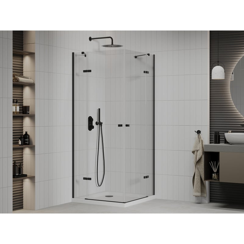 Sprchový kout Mexen Roma Duo s výklopným mechanismem 100 x 100 cm, průhledný, černý + plochá sprchová vanička - 854-100-100-70-02-4010B