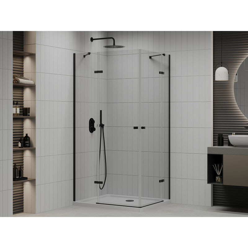 Sprchový kout Mexen Roma Duo s výklopným mechanismem 80 x 70 cm, průhledný, černý + plochá sprchová vanička - 854-080-070-70-02-4010B