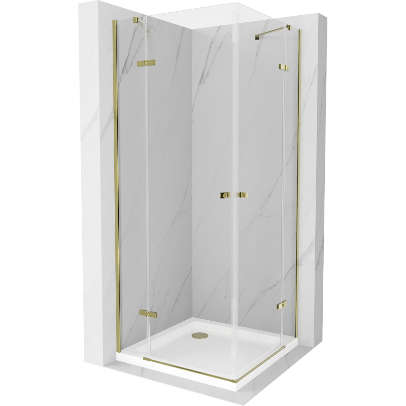 Sprchový kout Mexen Roma Duo s výklopným mechanismem 80 x 80 cm, průhledný, zlatý + plochá sprchová vanička - 854-080-080-50-02-4010G