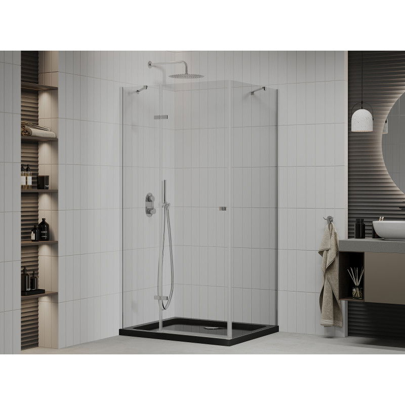 Sprchový kout Mexen Roma s výklopným mechanismem 100 x 80 cm, průhledný, chrom + plochá sprchová vanička, černá - 854-100-080-01-00-4070
