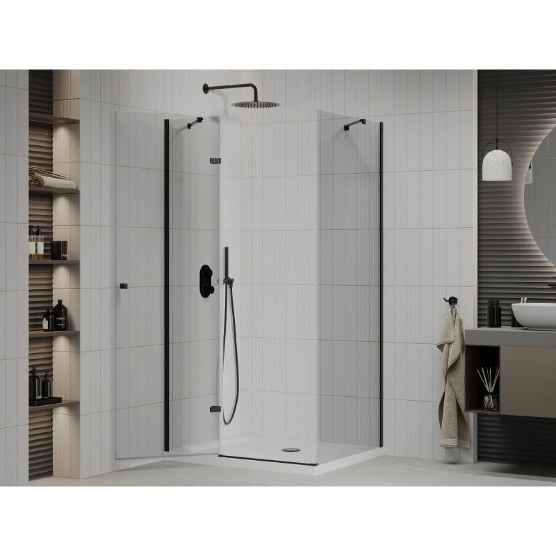 Sprchový kout Mexen Roma s výklopným mechanismem 100 x 90 cm, průhledný, černý + plochá sprchová vanička, bílá - 854-100-090-70-00-4010B