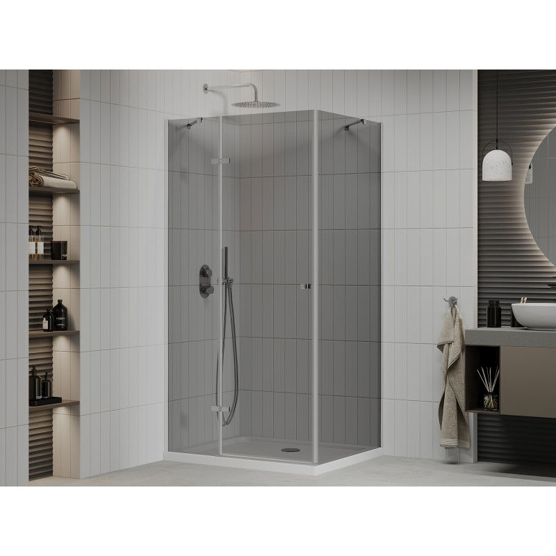 Sprchový kout Mexen Roma s výklopným mechanismem 70 x 90 cm, grafit, chrom + plochá sprchová vanička, bílá - 854-070-090-01-40-4010
