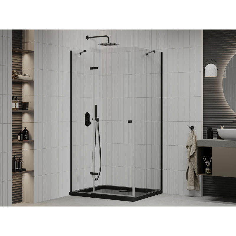 Sprchový kout Mexen Roma s výklopným mechanismem 90 x 100 cm, průhledný, černý + Plochá sprchová vanička, černá - 854-090-100-70-00-4070B