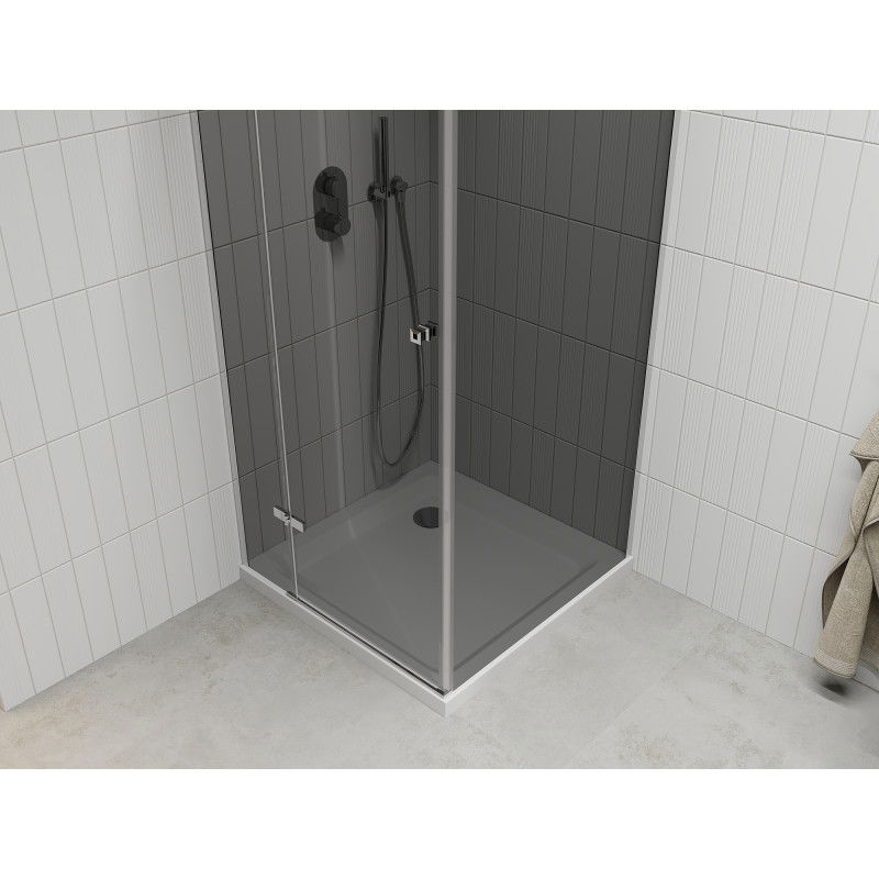 Sprchový kout Mexen Roma s výklopným mechanismem 90 x 90 cm, grafit, chrom + plochá sprchová vanička, bílá - 854-090-090-01-40-4010