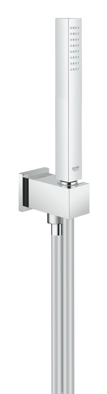 Set s držiakom na stenu, 1 prúd. Chrómové prevedenie, materiál plast. Zaistenie proti spätnému toku. Prietok 9,5 l/min. Vhodné pre prietokové ohrievače vody. Odporúčaný minimálny tlak vody 1,0 bar.