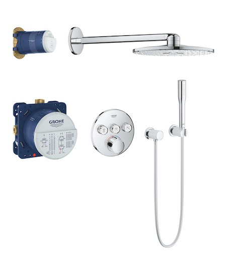 Sprchový set s podomietkovou batériou s dĺžkou 43 cm, batéria vrátane podomietkového telesa. V chrómovom prevedení. V oblom dizajne.
