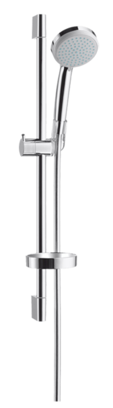 Sprchový set s mýdlenkou se 4 funkcemi s průměrem 100 mm s délkou 65 cm. Průtok 9 litrů/minutu. Materiál plast.