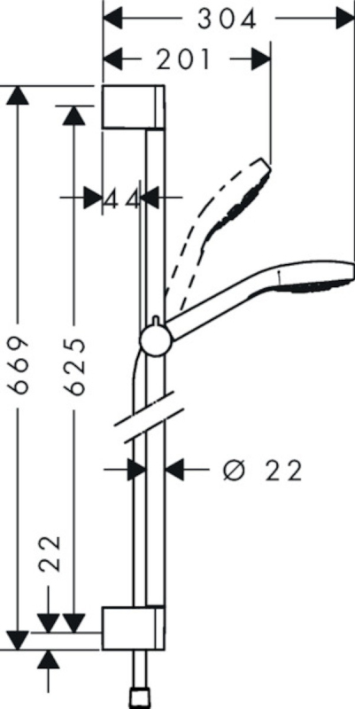 Sprchový set s 3 funkciami s priemerom 110 mm s dĺžkou 65 cm. Prietok 16 litrov/minútu. Materiál plast.
