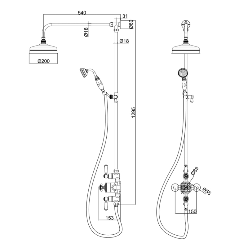 Sprchový stĺp s termostatickou batériou, chróm KI139 56353
