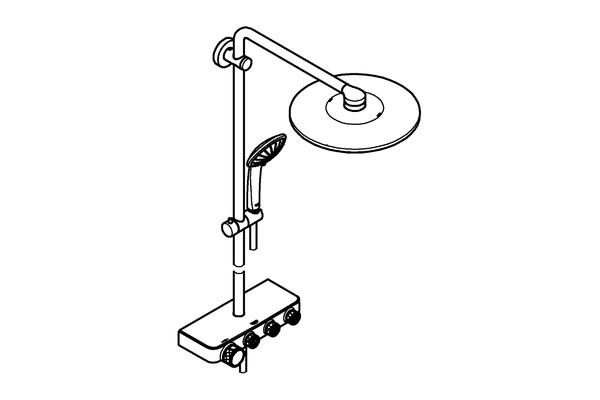 Sprchový systém s nástennou batériou s termostatickou batériou s priemerom 31 cm s výškou 110,4 cm. V čiernom prevedení s oblým tvarom.
