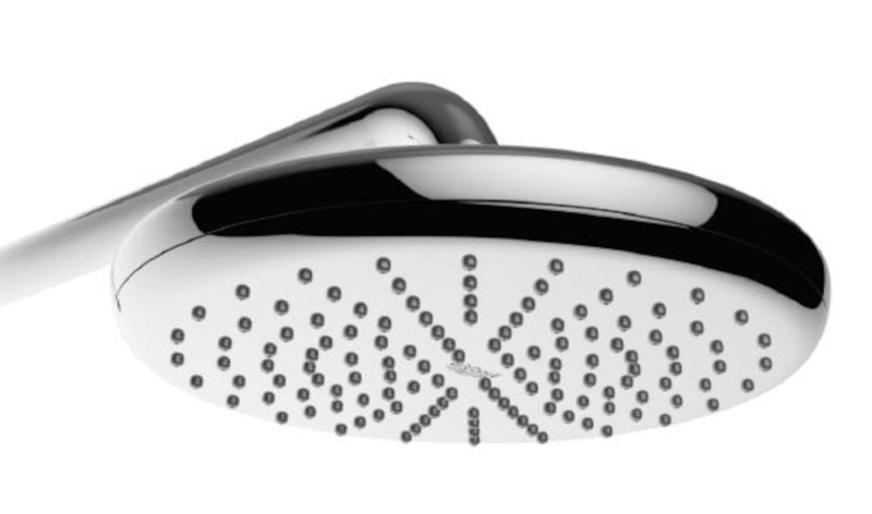 Sprchový systém s nástennou batériou s termostatickou batériou s priemerom 21 cm s výškou 113,2 cm. V okrúhlom dizajne.