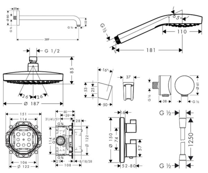 Sprchový systém Hansgrohe Ecostat vrátane podomietkového telesa chróm 27295000