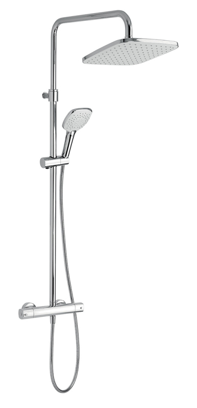 Sprchový systém s termostatickou batériou. Rozteč batérie je 150 mm.