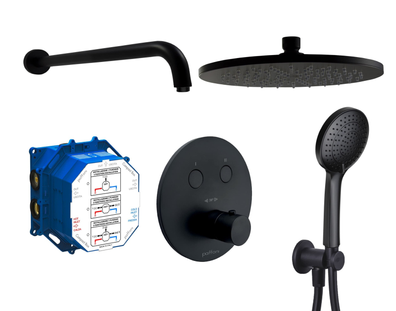Sprchový systém Paffoni vrátane podomietkového telesa čierna SIKOBPPSET1C