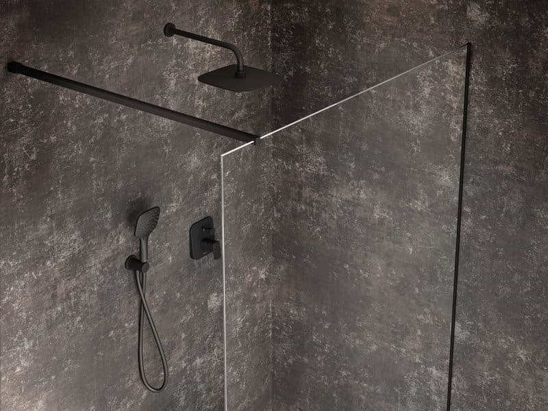 Sedmidílný sprchový set 10° Free s podomítkovou baterií. V černém provedení.