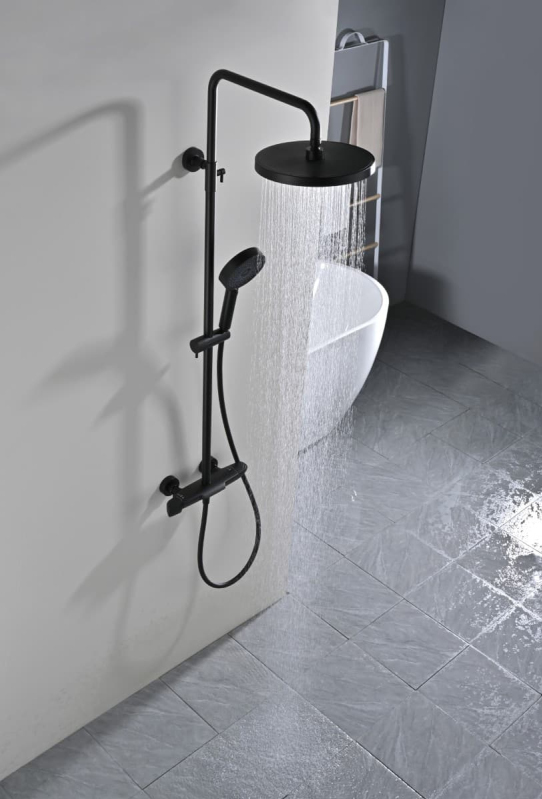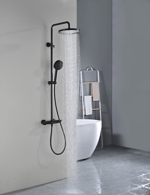 Sprchový systém SAT na stenu s vaňovým termostatom čierna matná SATSSTVKC