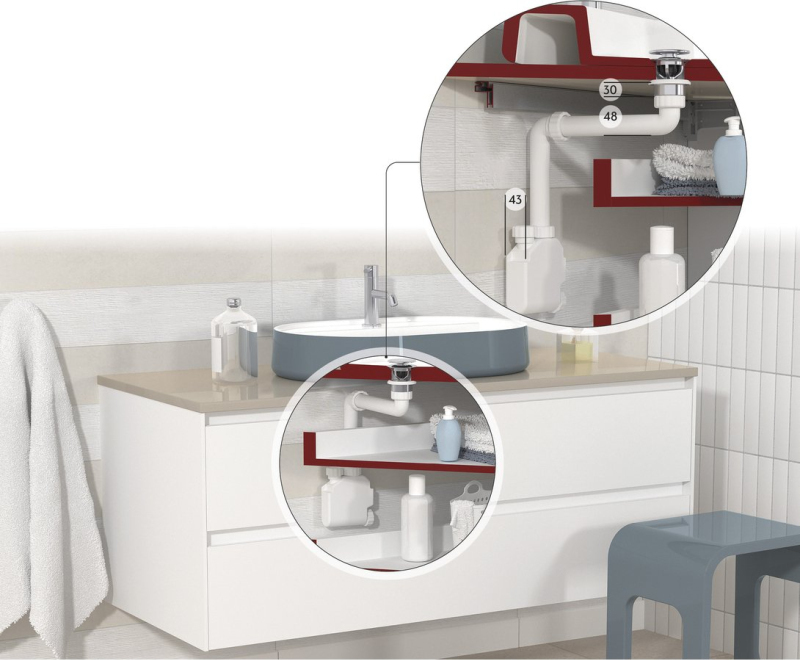 MURALES nábytkový sifón šetriaci miesto, 1"1/4, odpad 32mm, biela 151.032.0