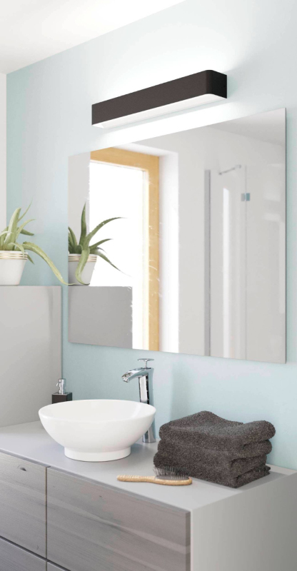 Ľad osvetlenia na stenu. Šírka 62 cm. S krytím IP44, je chránené proti striekajúcej vode. Príkon 26,5W. Svetelný tok 3200 lm. Farebná teplota osvetlenia je 3 000 K (teplá biela).