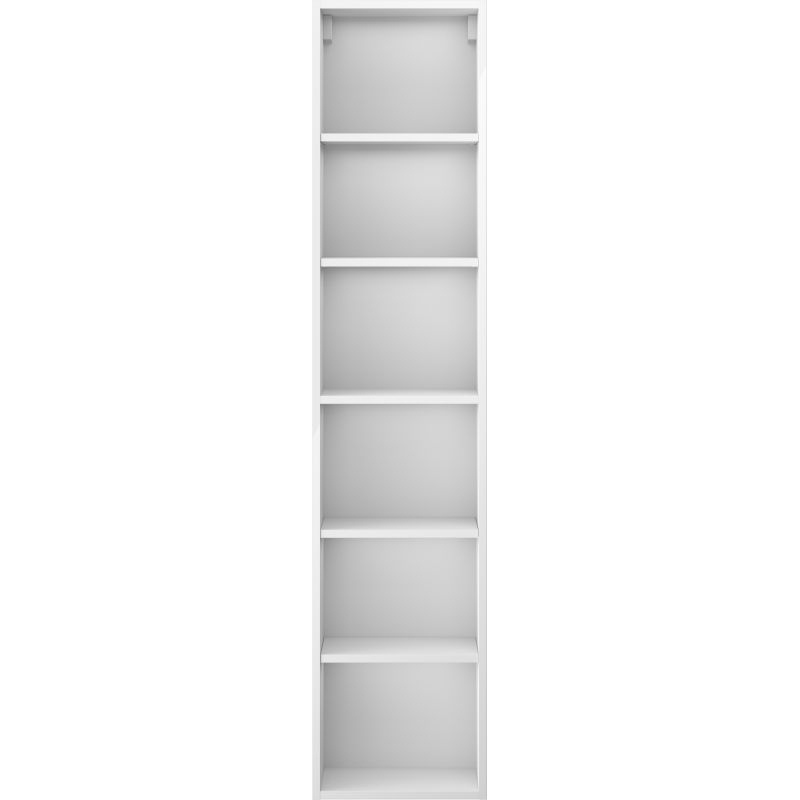 Špecifikácia produktu: Šírka: 35 cm Hĺbka: 44,2 cm Výška: 160 cm Farba: Lesklá biela Typ: Závesný Materiál: Lakovaná doska 5 políc (1 pevná prostredná polica a 4 nastaviteľné police) Pánty s funkciou tlmeného dovierania Univerzálna montáž dvierok (ľavé/pravé séria Orio, Rivel Produkt zmontovaný