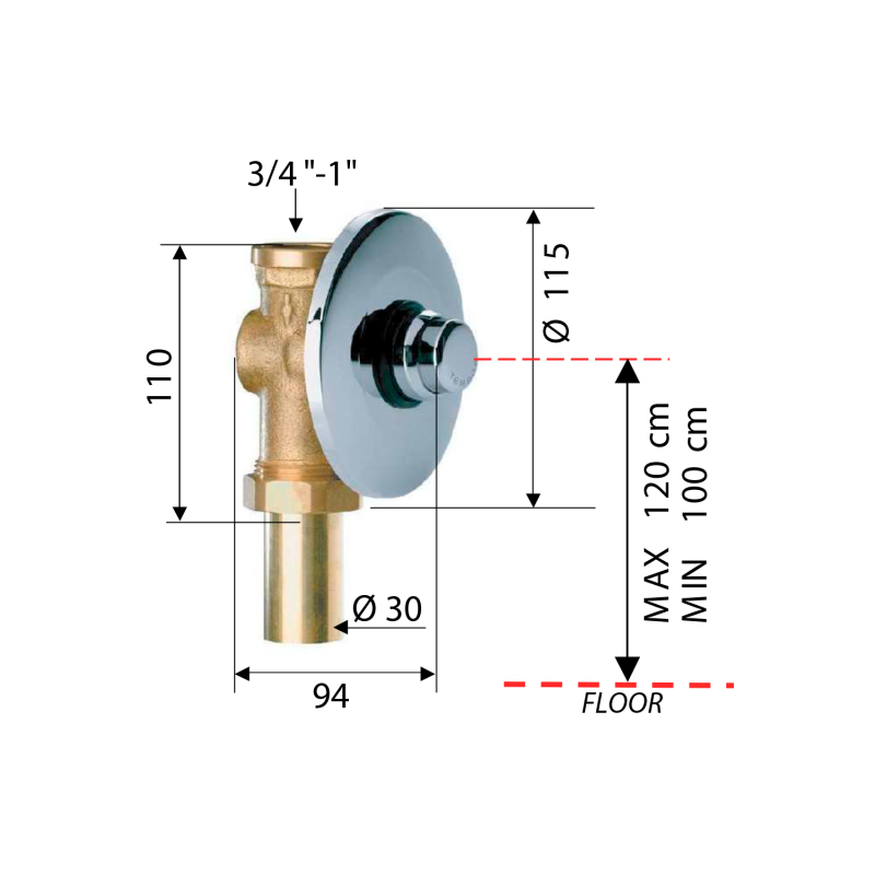 TEMPOR samouzatvárací podomietkový WC ventil, chróm 56707