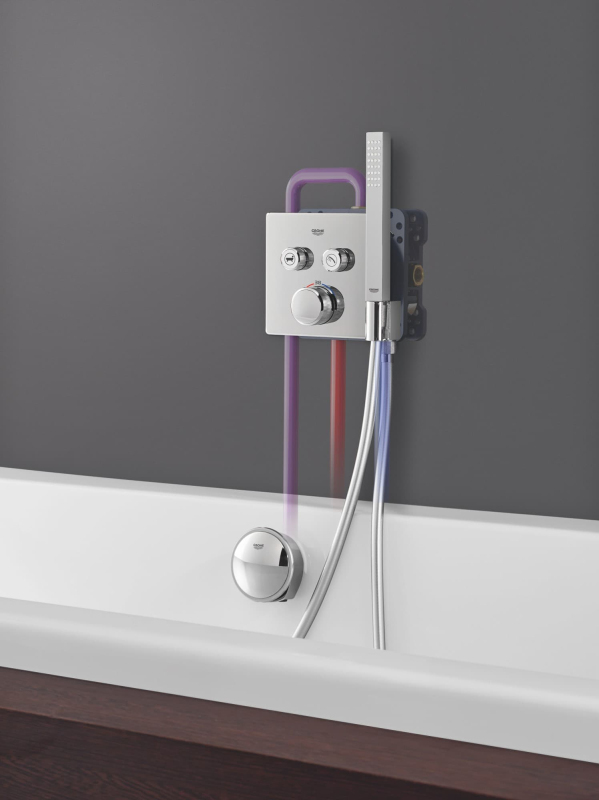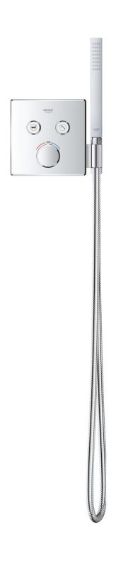 Termostatická podomietková sprchová batéria. V hranatom dizajne. V chrómovom prevedení. K batérii je potrebné dokúpiť montážne teleso GROHE Rapido SmartBox 35 600 000, ktoré nie je súčasťou balenia.
