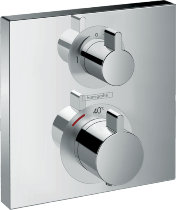 Termostatická baterie pod omítku Hansgrohe Ecostat Square s uzavíracím ventilem a regulací průtoku, chrom 15714000