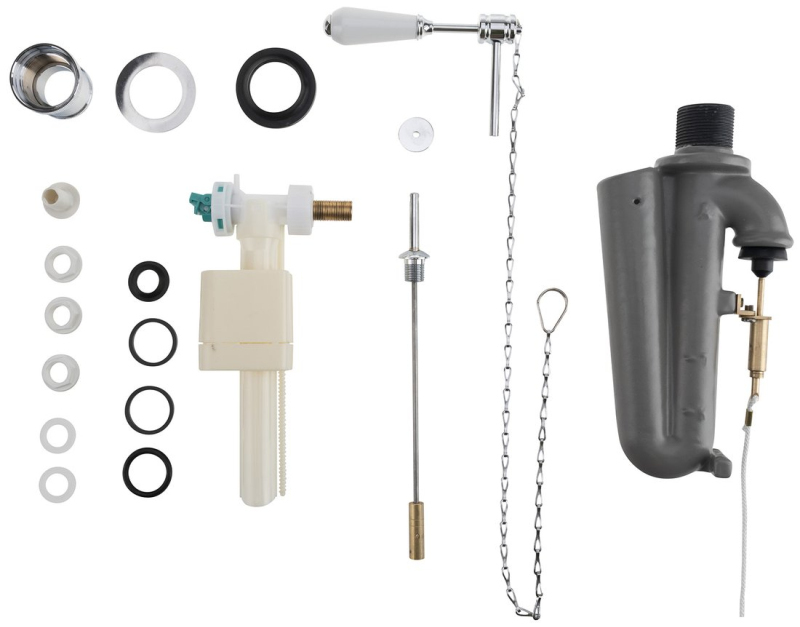 Balení splachovacího mechanismu obsahuje horní upevňovací matku k trubce nádržky.