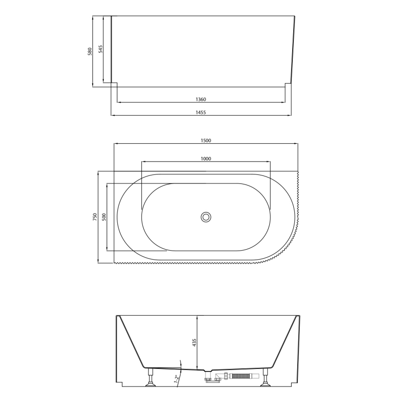 Samostatně stojící vana TIBERA se neobezdívá ani neobkládá. Svým designem je určena k instalaci do rohu, čímž se stává zajímavou variantou náhrady za klasickou rohovou vanu. Pohledová je i zadní strana, takže elegantně bude působit i v prostoru. Za pozornost stojí řešení přepadu ve tvaru obdélníkové štěrbiny s nerezovou krytkou.