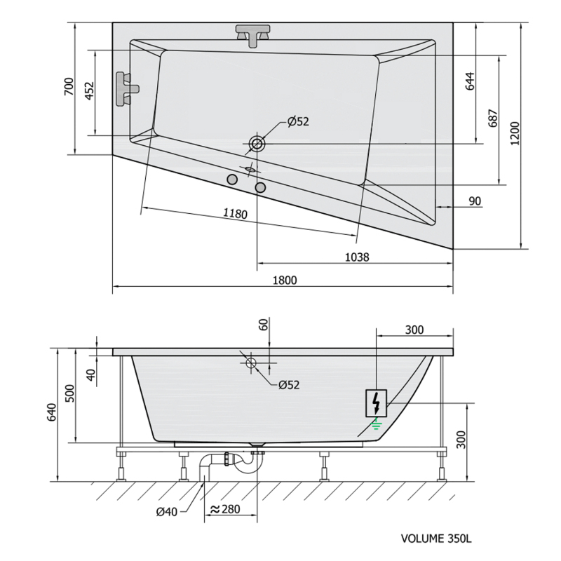 TRIANGL R hydromasážna vaňa, 180x120x50cm, Active Hydro-Air, chróm 57269
