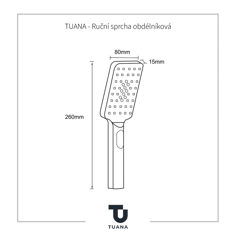 TUANA - Ručná sprcha obdĺžniková - 3 funkcie - chróm