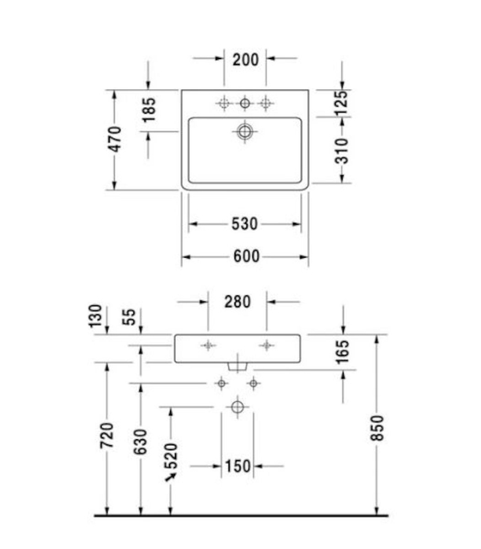 Umývadlo Duravit Vero 60x47 cm otvor pre batériu, s prietokom 0454600000