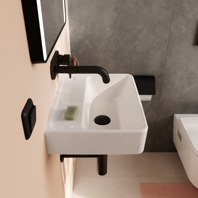 Umývadlo v bielej farbe bez otvoru pre batériu, bez prepadu od výrobcu Hansgrohe zo série Xanuia Q. Rozmery produktu sú 45x34x10,5 cm.