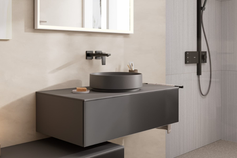Umývadlo vo farbe bridlicová matná šedá bez otvoru pre batériu, bez prepadu od výrobcu Hansgrohe zo série Xuniva Evo S. Rozmery produktu sú 40x40 cm. Montážna sada je súčasťou balenia.