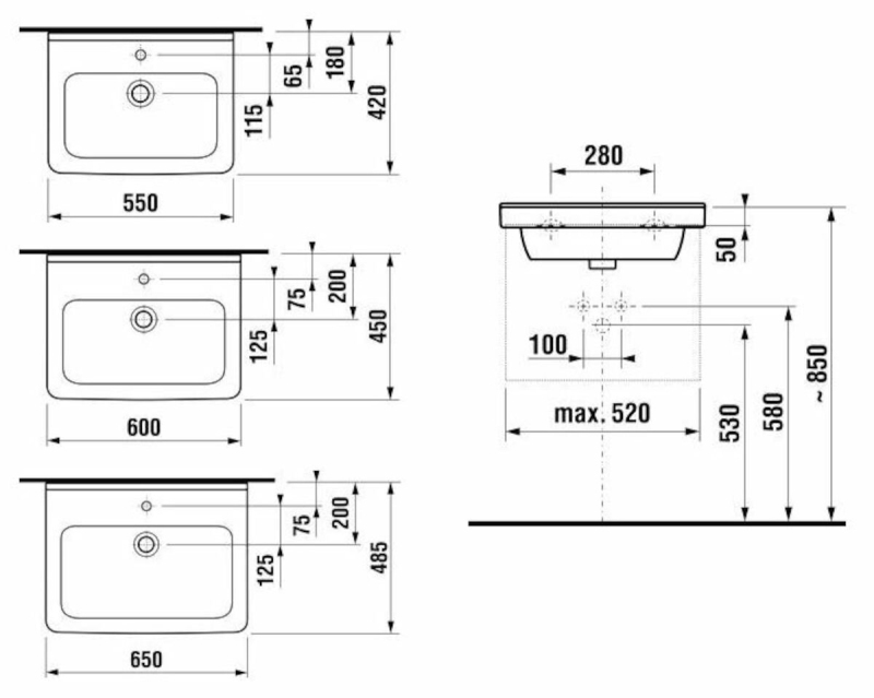 Umývadlo bez otvoru pre batériu so šírkou 55 cm, hĺbkou 42 cm a výškou 16,5 cm. Balenie bez sifónu a batérie. Montážnu sadu je nutné dokúpiť.