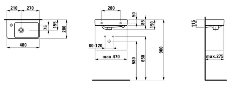 Umývadlo so šírkou 48 cm, hĺbkou 28 cm a výškou 15 cm. Antibakteriálny povrch s jednoduchou údržbou. Balenie bez sifónu a batérie. Montážnu sadu je nutné dokúpiť.