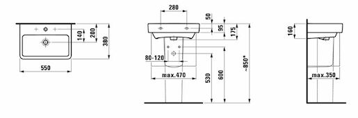 Umyvadlo Laufen Pro 60x38 cm otvor pro baterii, bez přepadu H8189590001561