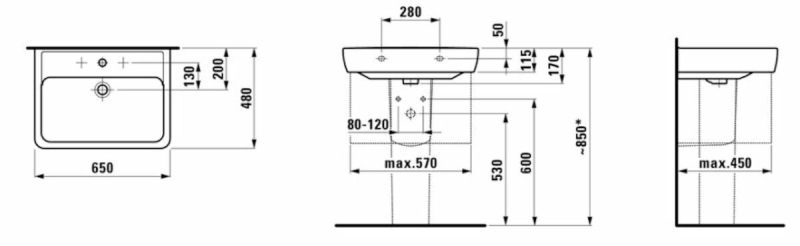 Umyvadlo Laufen Pro 65x48 cm otvor pro baterii uprostřed H8189530001041