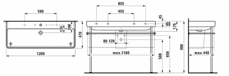 Umývadlo Laufen Pro S 120x46 cm dva otvory pre batériu H8149650001071