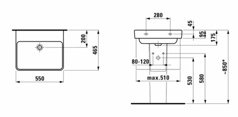 Umývadlo Laufen Pro S 55x46,5 cm bez otvoru pre batériu H8109624001091