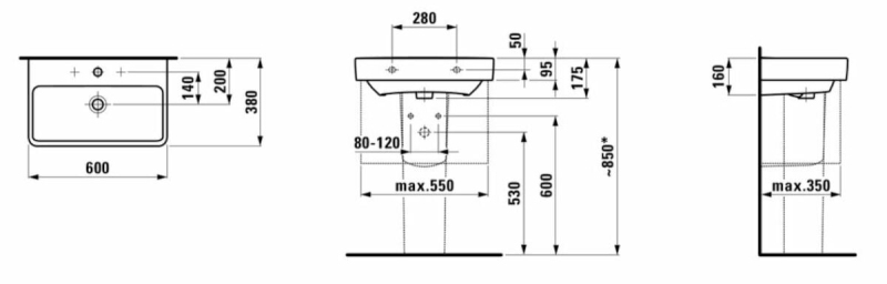 Umývadlo Laufen Pro S 60x38 cm otvor pre batériu uprostred 1895.9.000.104.1