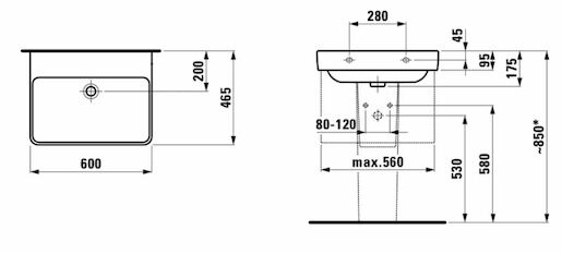 Umývadlo bez otvoru pre batériu so šírkou 60 cm, hĺbkou 46,5 cm a výškou 17,5 cm. Balenie bez sifónu a batérie. Montážnu sadu je nutné dokúpiť.