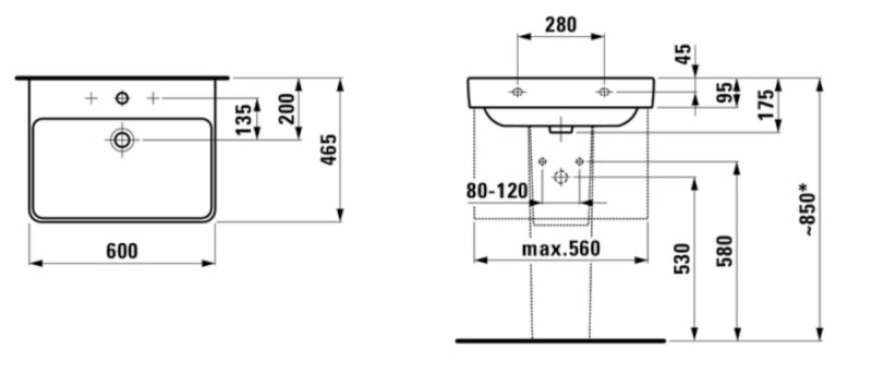 Umývadlo Laufen Pro S 60x46,5 cm otvor pre batériu uprostred H8109634001041