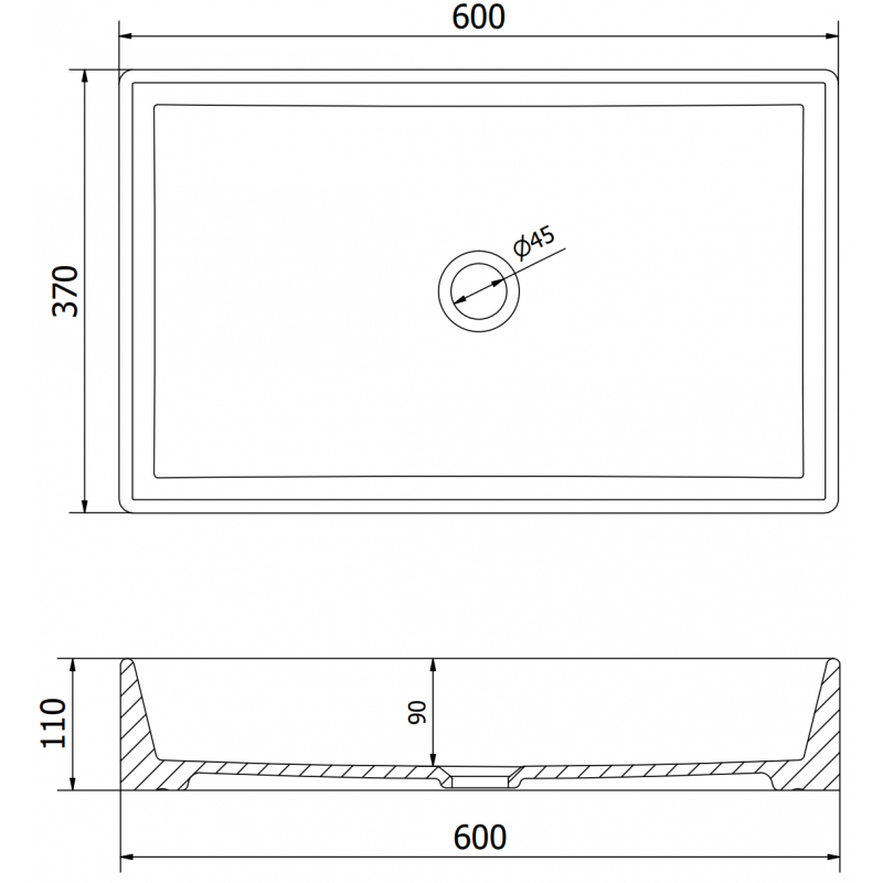 Technické údaje: Rozmer: 60x37x11 cm Hĺbka: 9 cm Typ: Pracovná doska Farba: Svetlosivá matná Materiál: Sanitárna keramika Otvor pre prepad: Nie Otvor pre batériu: Nie