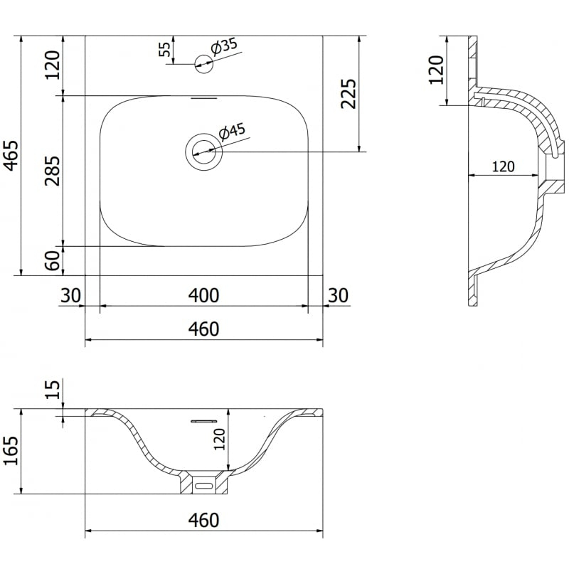 Špecifikácia produktu: Rozmer: 46x46, 5x16, 5 cm Hĺbka: 12 cm Typ: Zapustený Farba: Matná biela Materiál: Konglomerát Otvor pre prepad: Áno Otvor pre kohútik: Áno